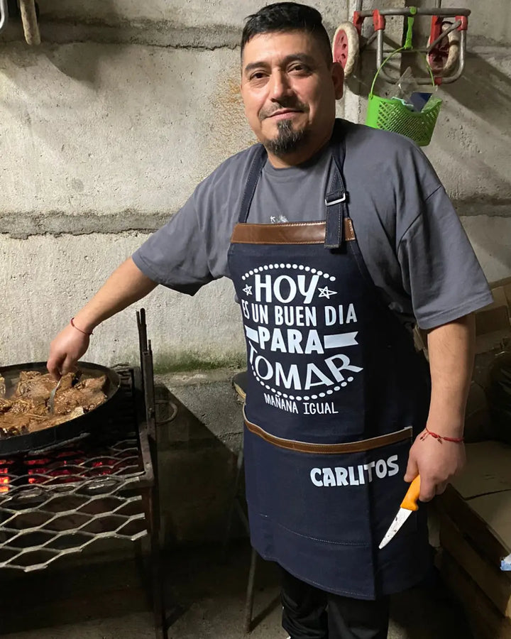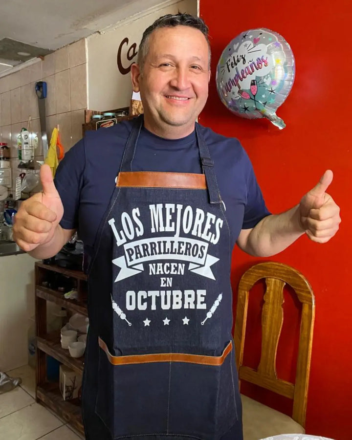 Conoce a clientes reales usando nuestras pecheras parrilleras en sus asados. Diseños resistentes y listos que acompañan cada celebración.