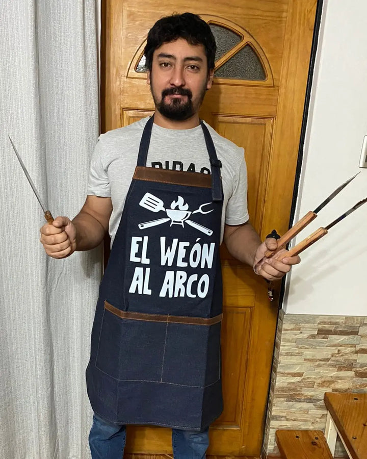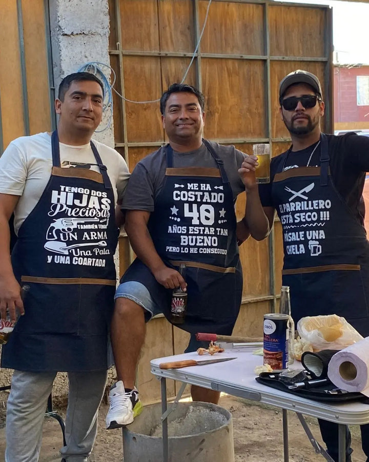 Conoce a clientes reales usando nuestras pecheras parrilleras en sus asados. Diseños resistentes y listos que acompañan cada celebración.