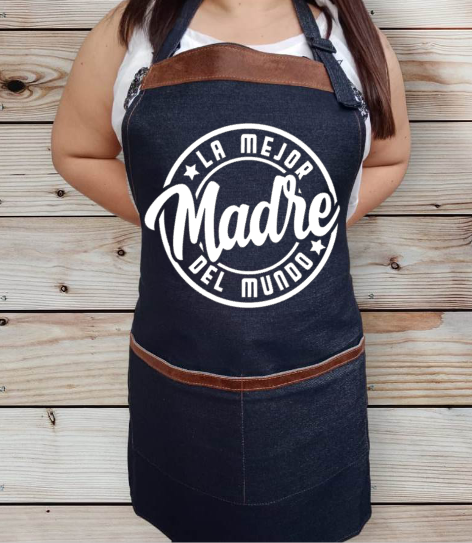 Materiales: La Pechera es de mezclilla rígida de color azul, de 10 onzas, 100% Algodón.