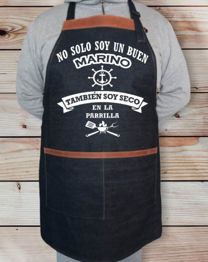 Materiales: La Pechera es de mezclilla rígida de color azul, de 10 onzas, 100% Algodón.
