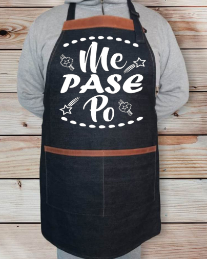 Materiales: La Pechera es de mezclilla rígida de color azul, de 10 onzas, 100% Algodón.
