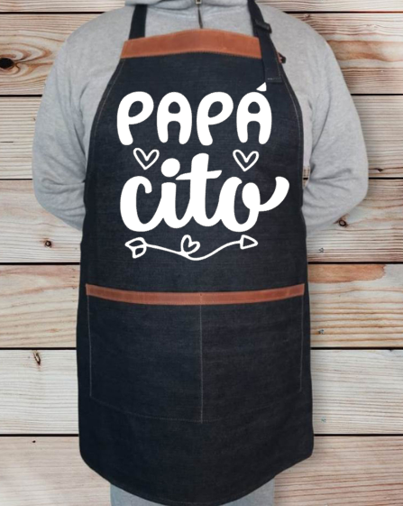 Materiales: La Pechera es de mezclilla rígida de color azul, de 10 onzas, 100% Algodón.