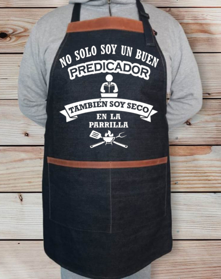 Materiales: La Pechera es de mezclilla rígida de color azul, de 10 onzas, 100% Algodón.