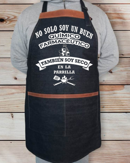 Materiales: La Pechera es de mezclilla rígida de color azul, de 10 onzas, 100% Algodón.