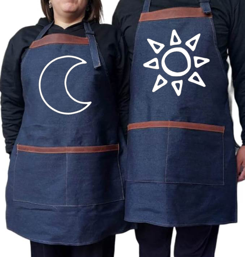 Materiales: La Pechera es de mezclilla rígida de color azul, de 10 onzas, 100% Algodón.