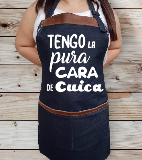 Materiales: La Pechera es de mezclilla rígida de color azul, de 10 onzas, 100% Algodón.