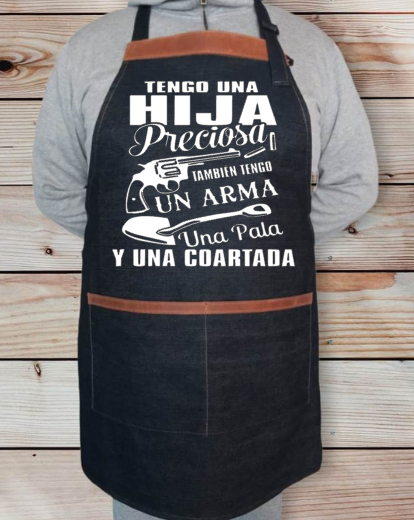 Materiales: La Pechera es de mezclilla rígida de color azul, de 10 onzas, 100% Algodón.