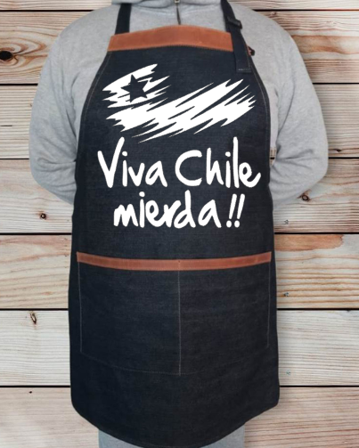 Materiales: La Pechera es de mezclilla rígida de color azul, de 10 onzas, 100% Algodón.