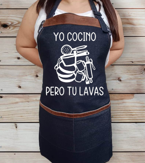 Materiales: La Pechera es de mezclilla rígida de color azul, de 10 onzas, 100% Algodón.